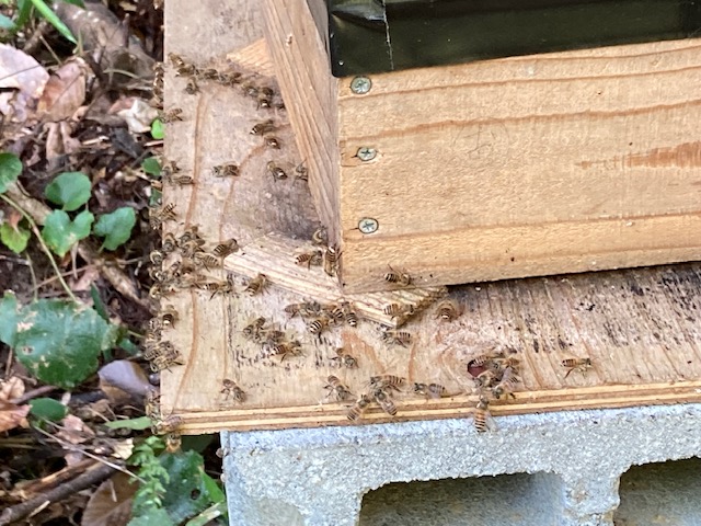 今朝もミツバチの出入りが・・・Photo. by Ms.Fujita H.