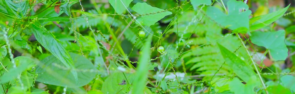 遊具の谷の、まだ未熟なスズメウリ(実)