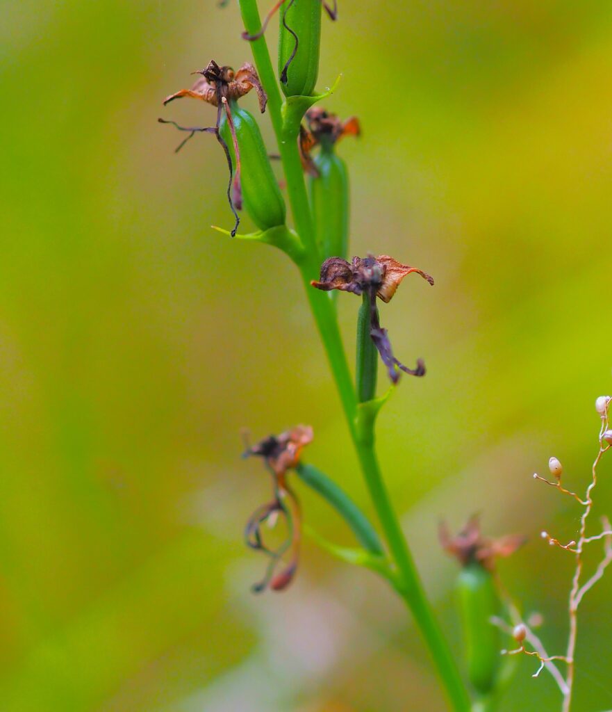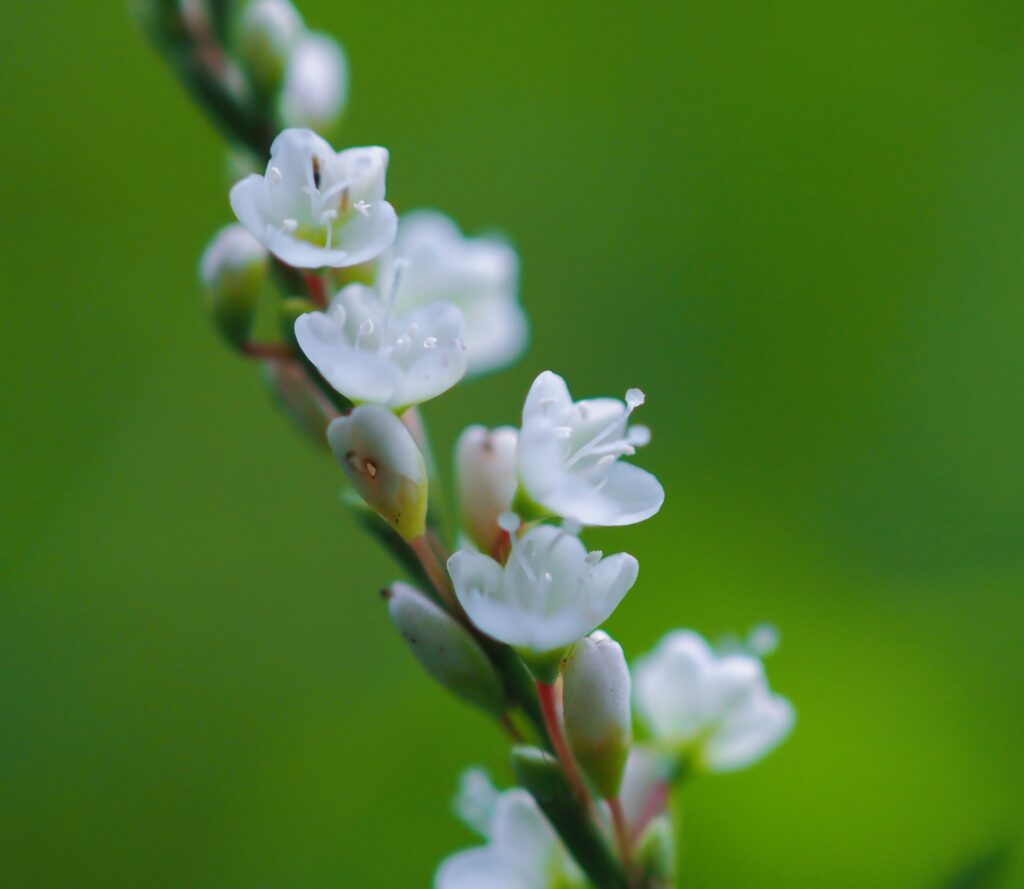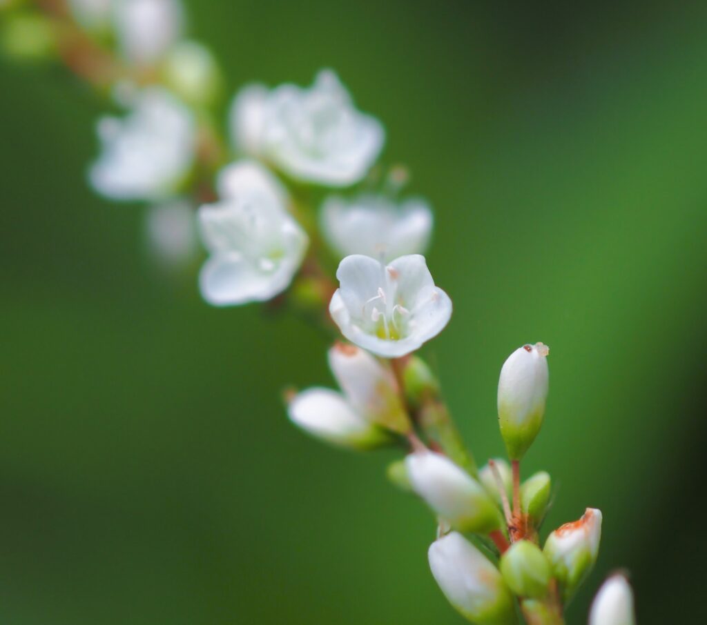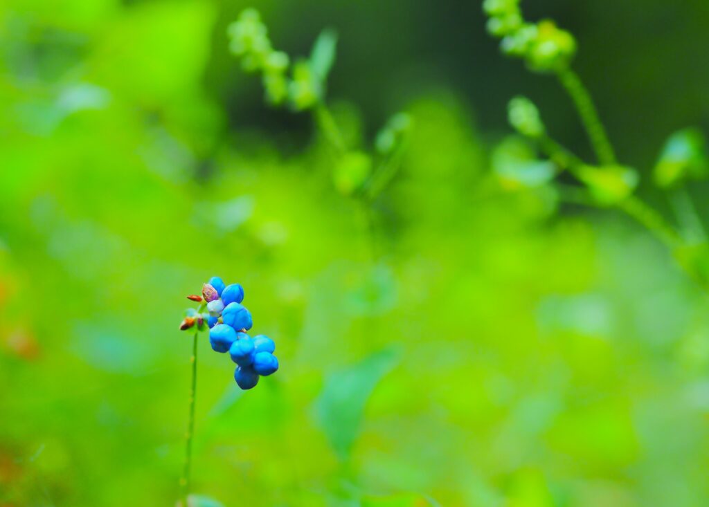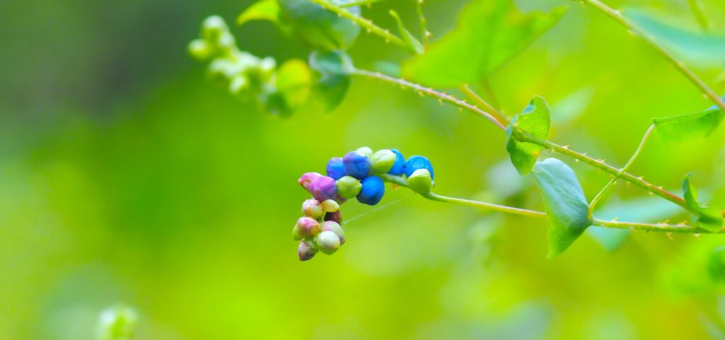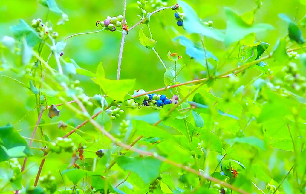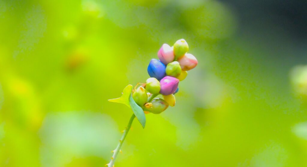 順次、ツボミと見分けの付かない淡緑白色~紅紫~青紫~青藍色に変わります。