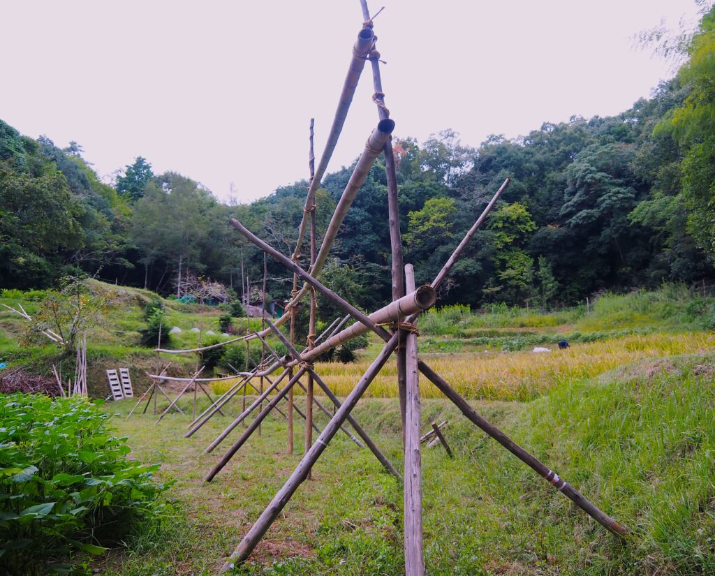 稲木が建ちました。いよいよ稲刈りが始まります。