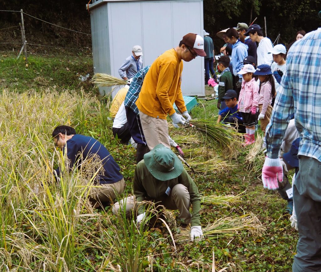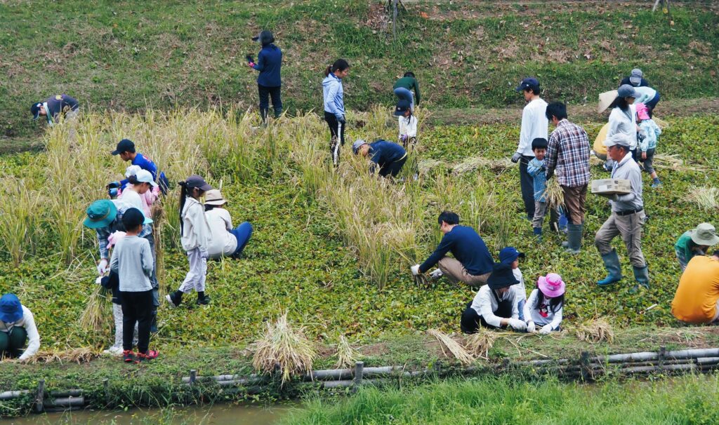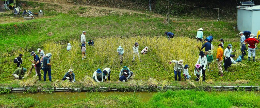 稲刈り稲架掛け体験イベントに参加の皆様がほぼお集まりになりました、ので・・・