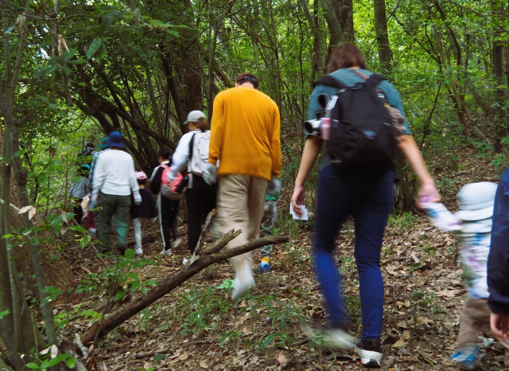 小さなお嬢ちゃんもお母さんにぶら下がるようにして獣道を登って・・・
